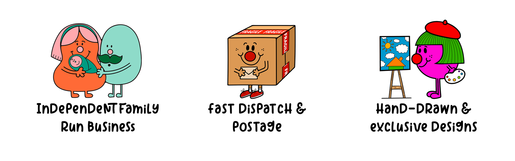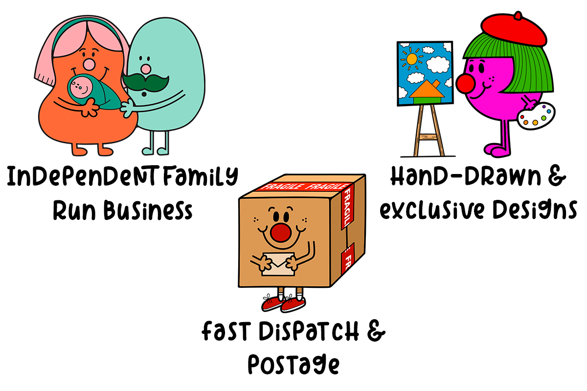 The hand-drawn, tablet-drawn & parody artworks shown are all created by the CheekyChugs team, that are for exclusive products that are only available on Etsy UK via the CheekyChugs store, we do not sell our illustrations anywhere else other than here. Our MR and MS parody custom drawings and illustrations are inspired by the penned drawings of the late Roger Hargreaves who sadly passed away in 1988, leaving behind a fantastic legacy that both adults & children have enjoyed for years.